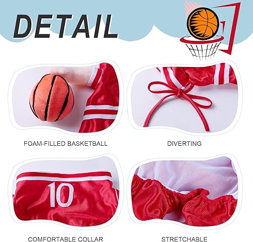 【Unique Appearance】: This costume makes your pet look like a basketball player. It's got stuffed arms to make it look even more realistic, and it comes with a foam basketball that looks like it's bouncing when your pet runs around. It's hilarious!