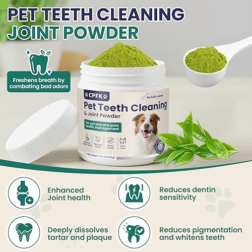 Say Goodbye to Bad Breath & Take Care of Joints:Get rid of your dog's bad breath and stiffness of movement for good! Our dog tooth powder is formulated with green tea and probiotics to neutralize odors and fresh breath for dogs, while joint supplement for dogs helps maintain joint mobility. Simply mix with food and water, no brushing or fussing required