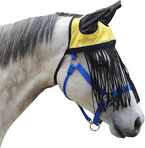 HIGH QUALITY DESIGN - Derby's fly bonnet features soft nylon mesh, ears and fleece trim and comes in three attractive color options: black, yellow, and patriotic (red, white, and blue).