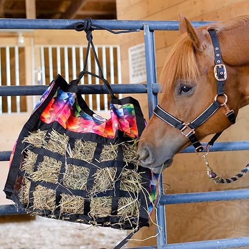 HOLDS 2-3 FLAKES OF HAY - this 24.5"x9.5"x21.5” hay bag with 3.5" square openings holds approx. 2-3 flakes of Timothy, Orchard, Alfalfa, or any other type of hay. Our hay bags were designed to minimize frustration and can be stuffed in seconds.
