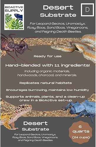 This substrate is recommended for Desert Scorpions & Tarantula, Feigning Death Beetle, Frog Eyed Geckos, Leopard Geckos, Rosy Boa, Sand Boa, Uromax, Vineagaroon, and many more!