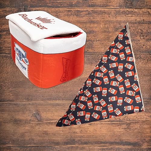 OFFICIAL BUSCH LIGHT TOY: Includes a plush cooler with detachable squeaky latex bottles plus a Busch Light bandana for a complete play-and-style set.