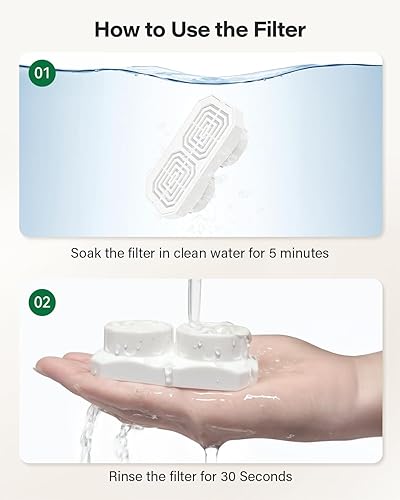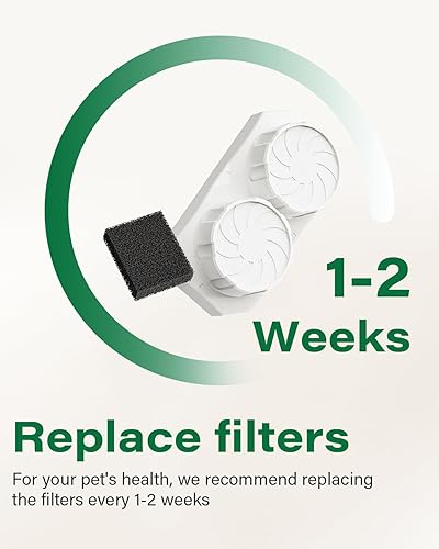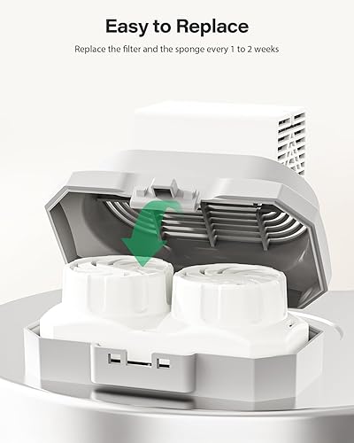 Replace The Filter Regularly: Depending on your pet's drinking frequency and the number of pets using the fountain, we recommend to replace the filter and the sponge every 1 to 2 weeks