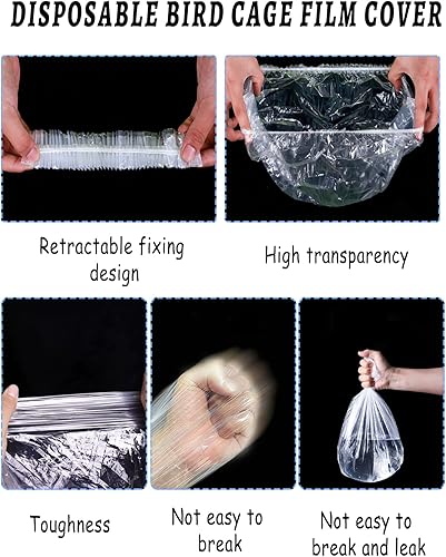 PACKAGING: You will receive 100 disposable film bags, and 1 portable bird feeder, these bags are perfect for collecting debris from the bird cage tray, ensuring hygiene and environmental protection while maintaining a clean and healthy environment for your feathered friends