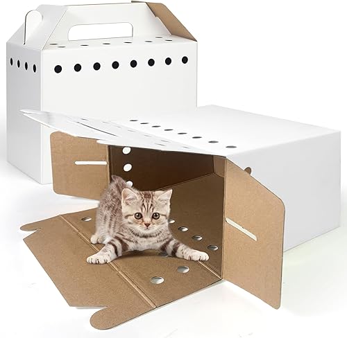 What You Will Get: 12 Pack Cardboard Pet Carrier Boxes. This is an economical way to transport pet home safely. Safe-no staples, the edges are neat, smooth and no burrs, plenty holes for air, safe for live small animals. Great short-term solution for moving a small pet.