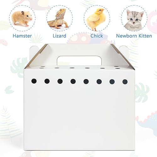 For Small Animals: Cardboard animal box size is 11"L X 8"H X 6"W, suitable for small animals such as puppies, kittens, hamsters, gerbils, reptiles, guinea pigs small birds and small chicken and more. For small kittens (less than 1 month old). Not suitable for grown cats or dogs.