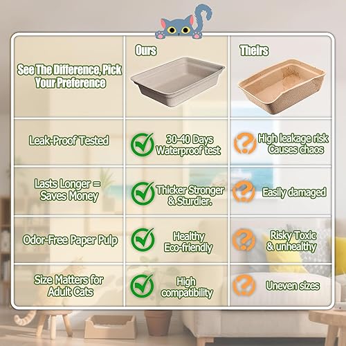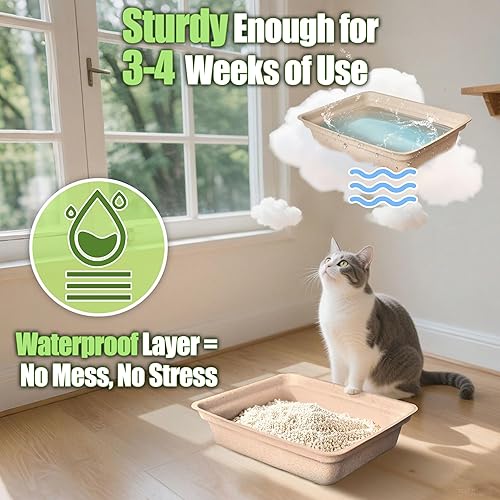 Sustainable & Recyclable Material: Made from 100% biodegradable cardboard this disposable cat box is perfect for eco-conscious pet owners. With a large size it fits adult cats perfectly —no more cramped litter trays
