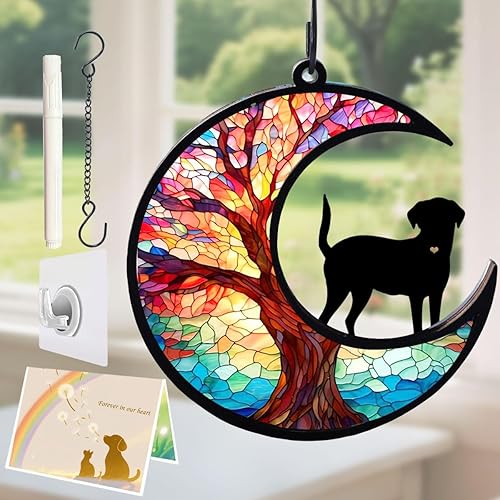 Installation & DIY: The loss of dog sympathy gift comes with a chain and a sticky hook, pass the chain through the small hole on the suncather to hang it anywhere you like. Comes with a pen so you can write your favourite pet's name or any other words on the memorial suncather to express your heart.