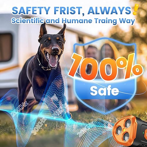 3X Fast, Humane, No Barking:Using triple ultrasonic emitters, this ultrasonic dog training device stops unwanted behaviors like barking, chewing, or biting quickly and effective. The alternating 25kHz fixed and 22–29kHz variable frequencies keep dogs from tuning it out. No pain, no harmful— Barks no more made easy. For best results, aim the device directly at your dog within 50ft. Ideal for dogs from 6 months to 8 years without hearing impairments: Not recommended for dogs with known neurological disorders, including epilepsy or seizures