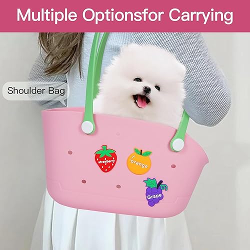 STYLISH DESIGN: Pink pet carrier tote featuring adorable fruit decorations and green handles, perfect for small pets(suitable for pets under 8 pounds) with a fun and fashionable appearance