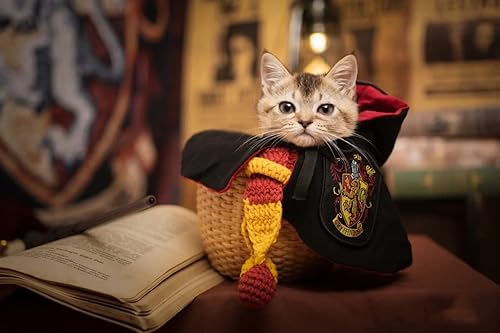 College Cape Design:The design of this animal cape originated from a classic movie.When your pet wearing this cape it become a small student that learn magic, which looks cool and cute, make your pet are wizard in magic school