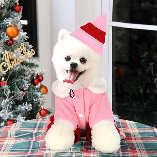 Multipurpose and Gift: Our dog christmas clothes is suitable for cats,chihuahuas, miniature pinschers, yorkshire terriers,etc. And can keep your pet warm and cozy during outdoor activities. Elf dog outfit Suitable for Halloween, Christmas, New Year, role-playing parties or everyday wear, and make your pet friends more attractive!