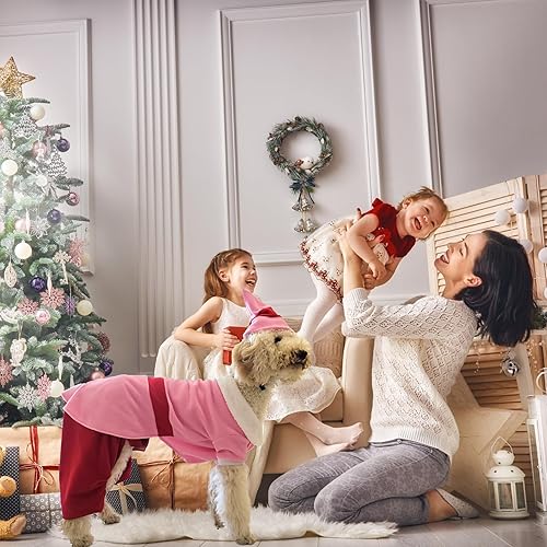 Novelty Design: This dog christmas costume has two colors: green and pink, the design incorporates elements that people love, making your pet party more interesting!