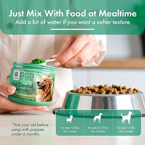 Easy to use – just add the dental powder for dogs to food or water. It works as a natural teeth cleaning supplement, helping remove plaque, fight bad breath, and maintain long-term oral health without brushing.