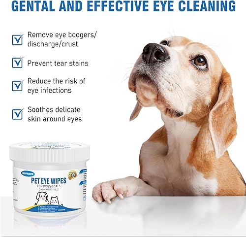 Keep Eyes Clean and Bright.Kopmath disposable dog eye wipes tear stain wipes provide a fast and convenient way to keep pet's eyes clean.Soft and textured cotton pads gently remove debris and discharge around pet's delicate eye area. Regular use can help remove tear stains and reduce the risk of eye problems.