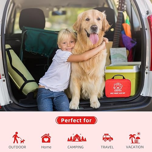 WATER-RESISTANT DURABLE BAG – Tough, water-resistant nylon case helps protect your pet’s first aid supplies from rain, mud, spills and rough outdoor use. Bright emergency red bag is easy to spot fast in your car or backpack