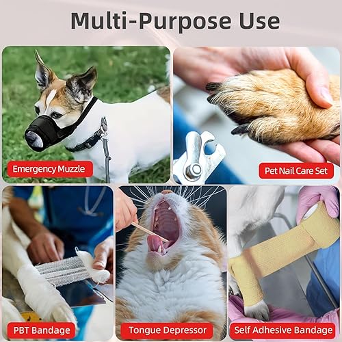 COMPLETE 39-PIECE PET FIRST AID KIT – Includes bandages, gauze pads, adhesive tape, tweezers, scissors, wipes, safety muzzle and more essentials to help handle minor cuts, bites, scrapes, and stress emergencies for dogs and cats before you reach a veterinarian