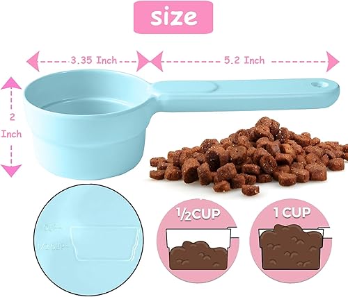 1 Cup Capacity - This dog food scoop maximum capacity is 1 cup, also marked with 1/2 cup. It is used to accurately measure the proportions of your pet's food, making it easy for you to customize a standard diet