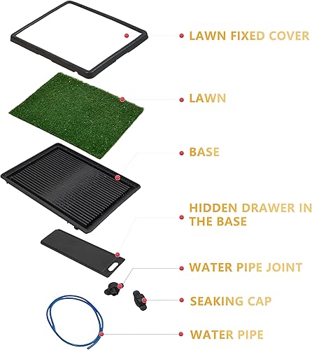 The simulated grass on the dog grass mat has thousands of small holes, and pet urine will quickly penetrate to the bottom, flowing along the reserved 6.6-foot long hose to the sewer without accumulating urine and avoiding unpleasant odors
