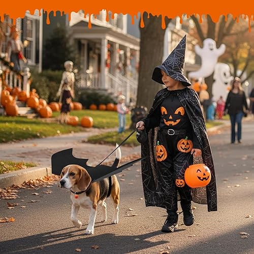 Catching Eye at Parties: This large dog Halloween costumes includes a fun pumpkin ghost face bell, perfect not only for Halloween but also for costume parties, pet parades, or any other event where you want your pet to be the center of attention. It's the perfect pet Halloween costume, dressing your dog in bat wings to make them a "Bat Dog".