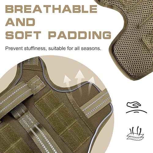 Durable & Comfortable: The dog harness is crafted with heavy duty and high quality materials, featuring two metal rings and two nylon handles that can withstand strong pulling forces. The breathable and soft mesh padding ensures comfort, and the neck cushioning prevents any choking or discomfort around the neck.