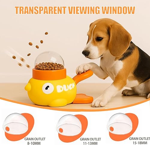 [Fun Interactive Mealtime] This puzzle feeder toy stimulates your dog's brain,This dog food puzzle feeder increases attention, reduces boredom, Press the duck's tail to activate the rotating food container, releasing treats randomly. It is not advisable to place too much food, the force of the pedal will also affect the distance of the snacks.perfect for engaging your dog's natural foraging instincts