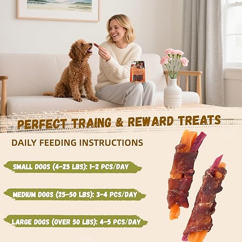 Low Fat Content: Low-fat feture makes these duck wrapped double sweet potato treats a healthier option,especially for weight-conscious dogs.Helps avoid excessive fat intake while satisfying cravings