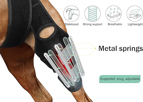 【DURABLE AND SUPPORT】Lyderpet ACL knee brace is made of soft breathable Neoprene which offers enhanced elasticity for a comfort fit. The metal springs fit tightly on the knee joint which provides strong support and stable while not limiting the dog's normal activities.