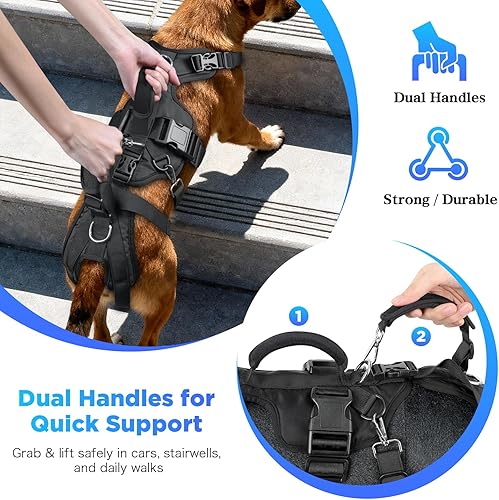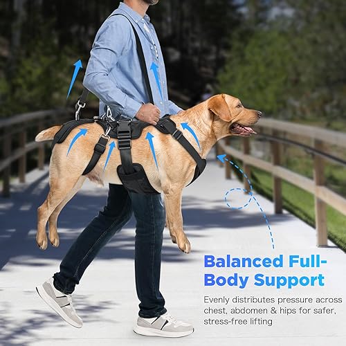 【Balanced Full-Body Support】Our dog lift harness for large dogs is designed with multiple lifting points to evenly distribute pressure across the chest, abdomen, and hips. This ergonomic dog support harness ensures safer, more comfortable lifting, reducing strain on both your pet and you. Give your loyal companion the steady support they need to stay active and confident.