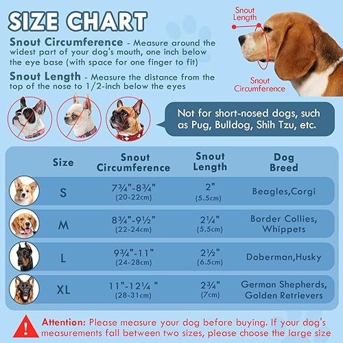Adjustable Fit: Features an adjustable hook and loop closure, ensuring a secure and comfortable fit tailored to your dog's snout shape. This design prevents even the most active dogs from escaping while outdoors, making it ideal for walks, vet visits, grooming, and wound recovery
