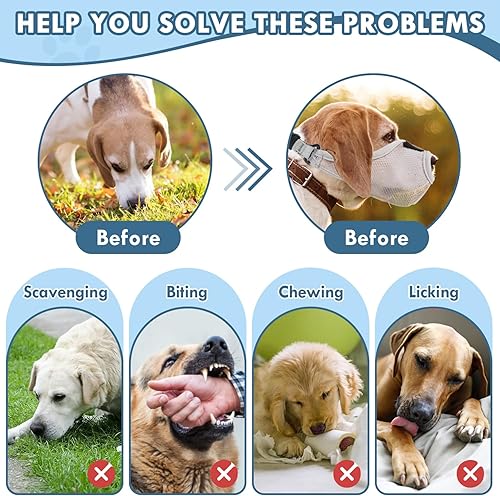 Effective Dog Muzzle: Our GREMCADA dog muzzle is designed to prevent unwanted behaviors such as biting, licking, chewing, and scavenging while allowing your dog to pant freely and comfortably. This soft air mesh muzzle is perfect for large, medium, and small dogs, ensuring a safe and enjoyable outdoor experience