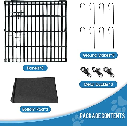 Great for Indoor & Outdoor Use:The rust-preventive and water-proof,protects the dog playpen from the elements & included ground stakes fix to ground not to move,allow to configure into multiple shapes, great for indoor or outdoor use.