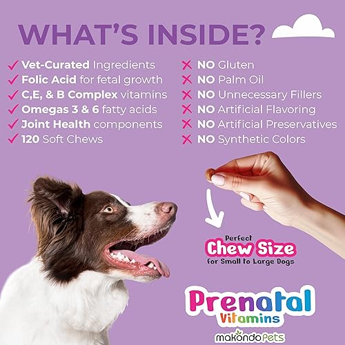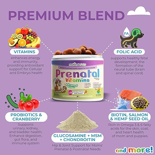 DURING PREGNANCY and POSTNATAL– Support the health of your pregnant dog and her growing puppies with our complete prenatal dog vitamins, veterinarian formulated for optimal maternal and fetal health.
