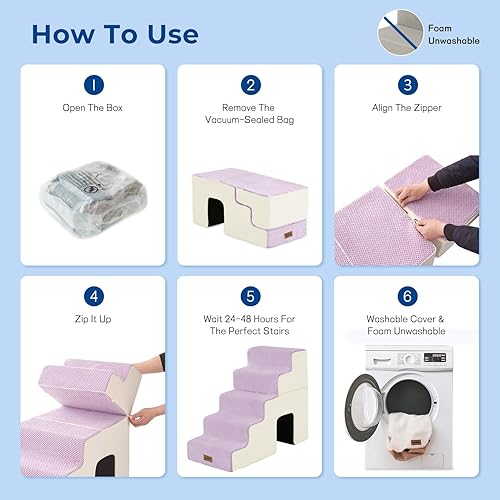 Easy Setup: The product is vacuum-packed and needs 24-48 hours to expand fully. The 5-step model connects a 2-step and a 3-step with a side zipper for easy installation.