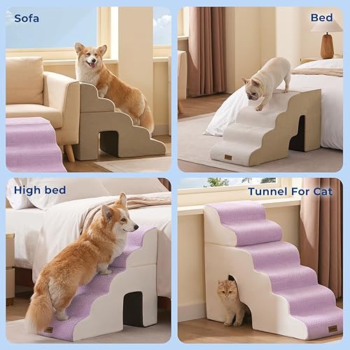 Interactive Features: Perfect for multi-pet households! The stairs include a tunnel for cats to play, offering an engaging space for your furry friends, especially suited for small dogs.