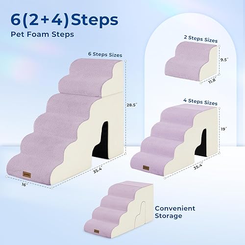 Durable: Made from high-density 35D foam, these stairs provide stability and can support over 60 lbs, ensuring safety for pets of all sizes.