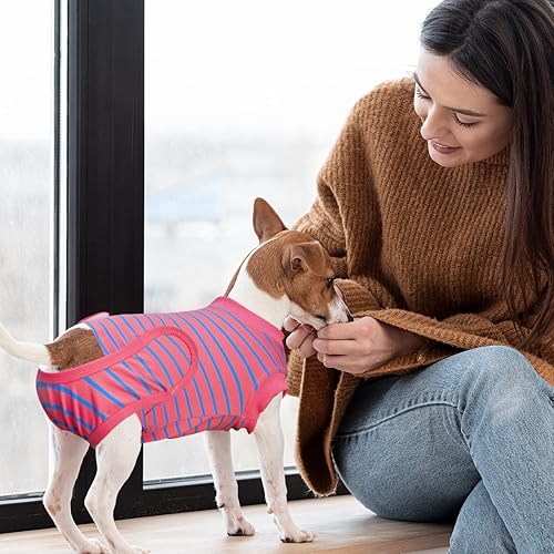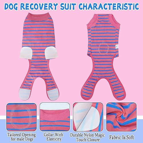 UNIQUE DESIGN & EASY TO WEAR: Our dog neuter surgical suits design of row buttons, very easy to wear & take off. Allows your dog to do anything without feeling obstructed, such as pee and poop, daily walking, sleep, etc. Comfortable, Use as after surgery wear for dogs, More care for injured dogs.Velcro design is more convenient for dogs to urinate.
