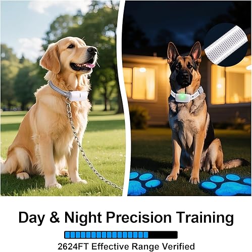 Advanced Multi-Dog Management: Coordinate multi-pet training 1 remote pairs 3 collars via dedicated channels. Auto-saved channel settings eliminate reset needs during switching. Dual LED indicators (press once for controller light, hold 2s for collar light) enable status tracking in low-light conditions