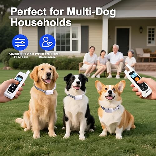 Excellent Outdoor Training System: Engineered for reliable control, this IP67 waterproof dog training collar delivers 3300FT operational range with 3 independent channels (CH1/CH2/CH3). The industrial-strength transmitter simultaneously manages 3 collars using 99-level vibration, beep, and safety shock (2-second max duration). Ideal for large properties, with rainproof construction and night-visible LEDs for hiking or evening walks