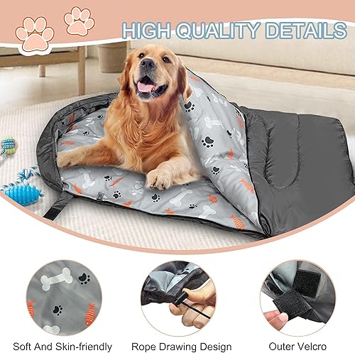 COMFORT & CONVENIENT: Never leave your dog behind on your outdoor adventures with the GeerDuo dog sleeping bag. This portable dog bed will ensure your pup has a warm and cozy place to sleep during the cooler camping months. With zipper and the velcro on the tail and one side of the dog travel bed, it's very easy to use for your puppy.