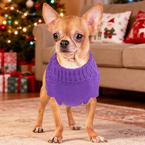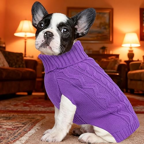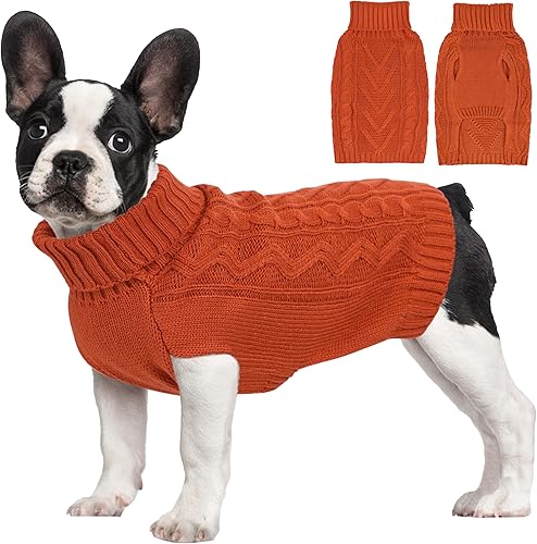 Warm Turtleneck Design-Turtleneck pullover dog sweaters can fully wrap your pet's neck, chest & belly snugly and and keep the dog warm continuously.Your pet will love to wear the cable knit sweater to come through the cold winter.