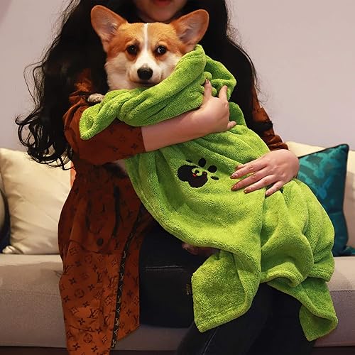 SUPER ABSORBENT: This dog towel is made of good-quality microfiber, which is more absorbent, softer and stronger than ordinary microfiber dog towels.