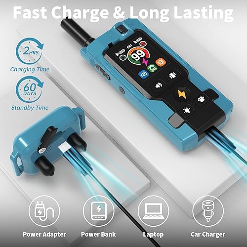【Faster Charge & Longer Standby Time】2-IN-1 charging cable allows you to fully charge the dog collar and remote within 2 hours. With a larger capacity rechargeable battery, this dog training collar with remote can last up to 60 days of standby time. Less time to charge, more time to train
