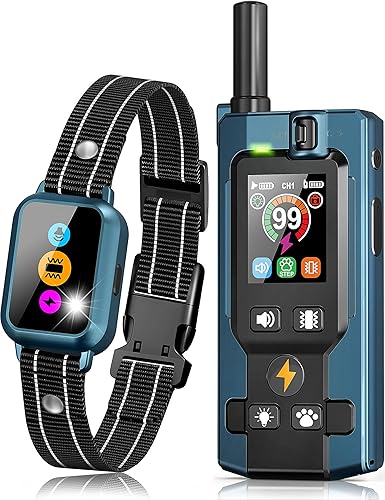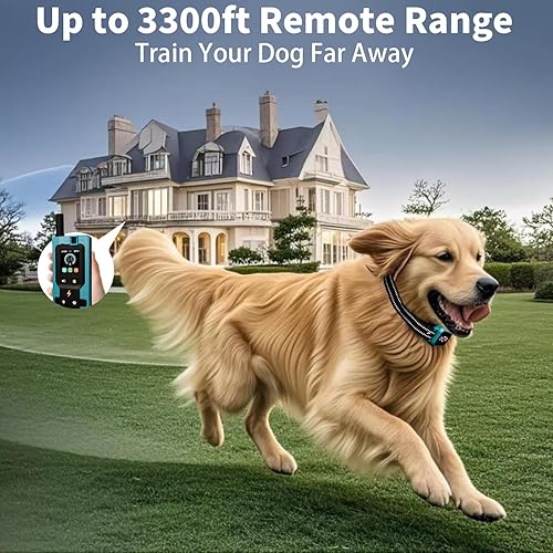 【3300FT Range & 2 Channel】Covering up to 3300FT, the e collar for dogs training allows the dog to roam farther, so convenient to train dog anywhere! One remote supports 2 receiver collars, so you are able to train simultaneously 2 dogs. Also, it has a memory function without resetting it