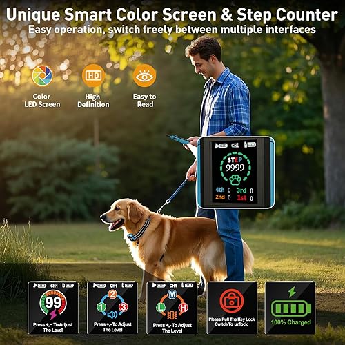 【Newest Smart Color Screen & Step Counter】Frayo dog shock collar is the first one in market to incorporate the design concept of smart phone screen, which makes adjusting settings easier. Adopted advanced pedometer technology, the shock collar for dogs can track dog activity and let you know dog's amount of exercise in time