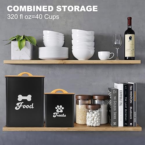 DURABLE & STURDY MATERIAL - Dog food storage cans are made of metal and will not be easily broken and can be used for a long time. Dog treat container for countertop is coated with a food grade coating to prevent corrosion and rust, making it a great storage option for dog food
