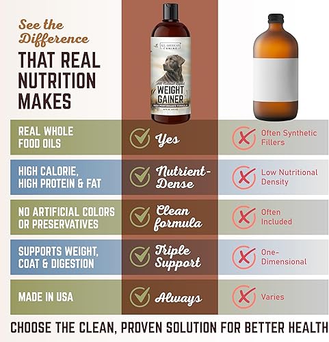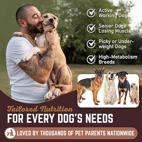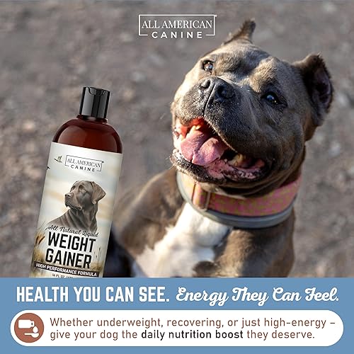 HIGH CALORIE WEIGHT GAINER FOR DOGS – All-natural liquid dog weight gainer designed to support healthy weight gain, mass, and recovery for dogs of all breeds and ages. Perfect high calorie supplement for dogs that need extra calories.