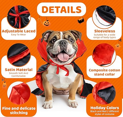 Easy to Wear: The dog Halloween cloak can be easily put on by tying the straps. Your dog will become the hit of Halloween. Enjoy the Halloween party with your little vampire and attract people's attention!
