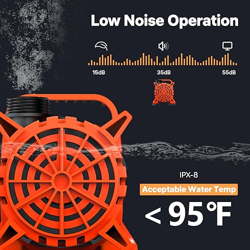 DURABILITY UP:This submersible pump built-in a copper motor and made of thermoplastic materia that automatically shuts off at 221°F to avoid overheating, The outer shell is wear-resistant and not easily damaged even after long-term use