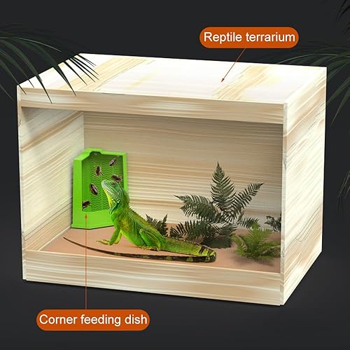 Suction Cup Fixed: Lizard Corner Terrarium Bowl With strong suction cup fixed adsorption, can be installed in the glass, acrylic square reptile feeding tank corners or adsorption hanging installation (wooden feeding box can only be placed in the corner position to use), anti-pouring and anti-escape.